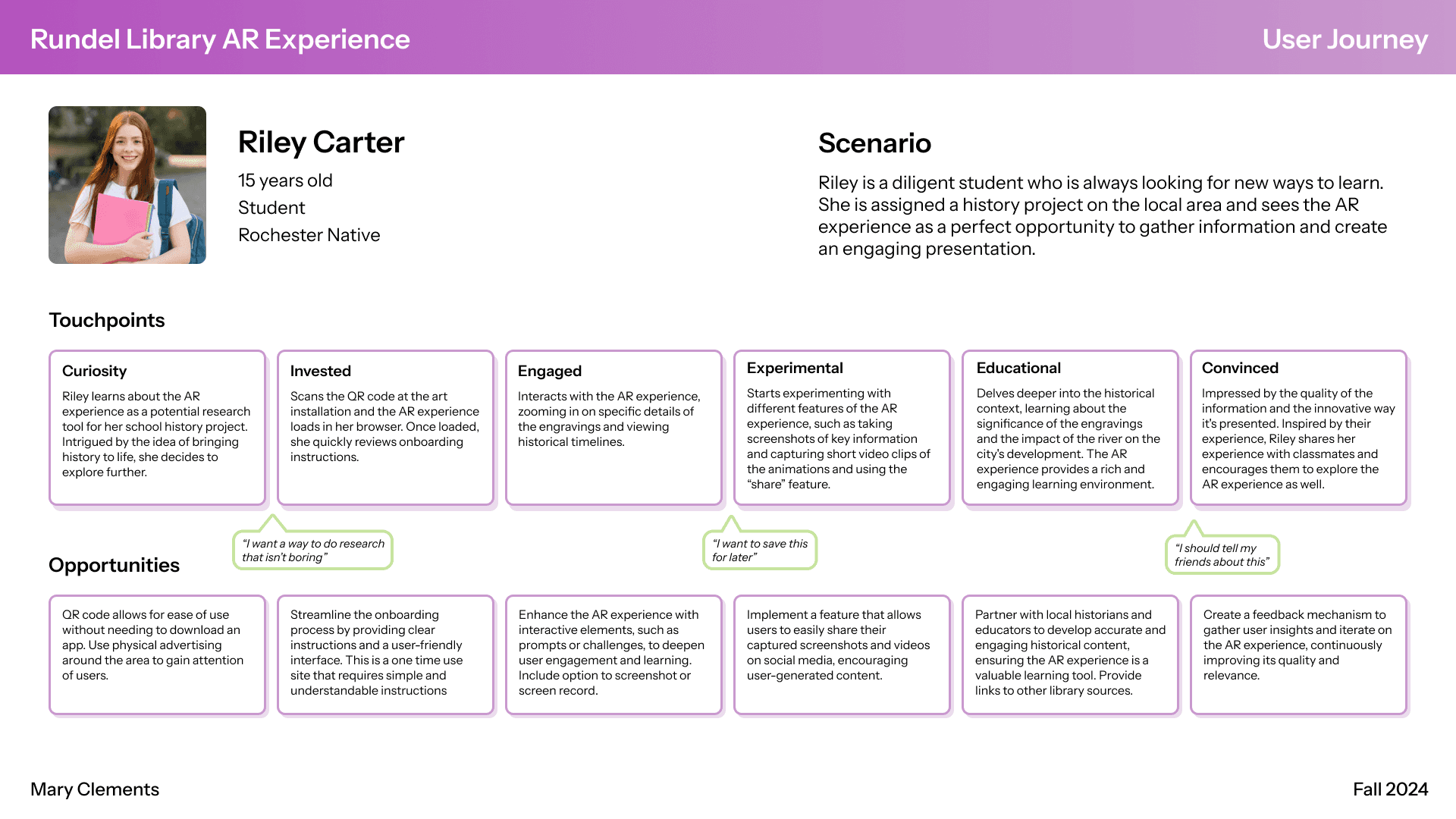 Engaging Young Users: Designing an experience that effectively engages young audiences and sparks their interest in learning more about Rochester's history as well as the public library.