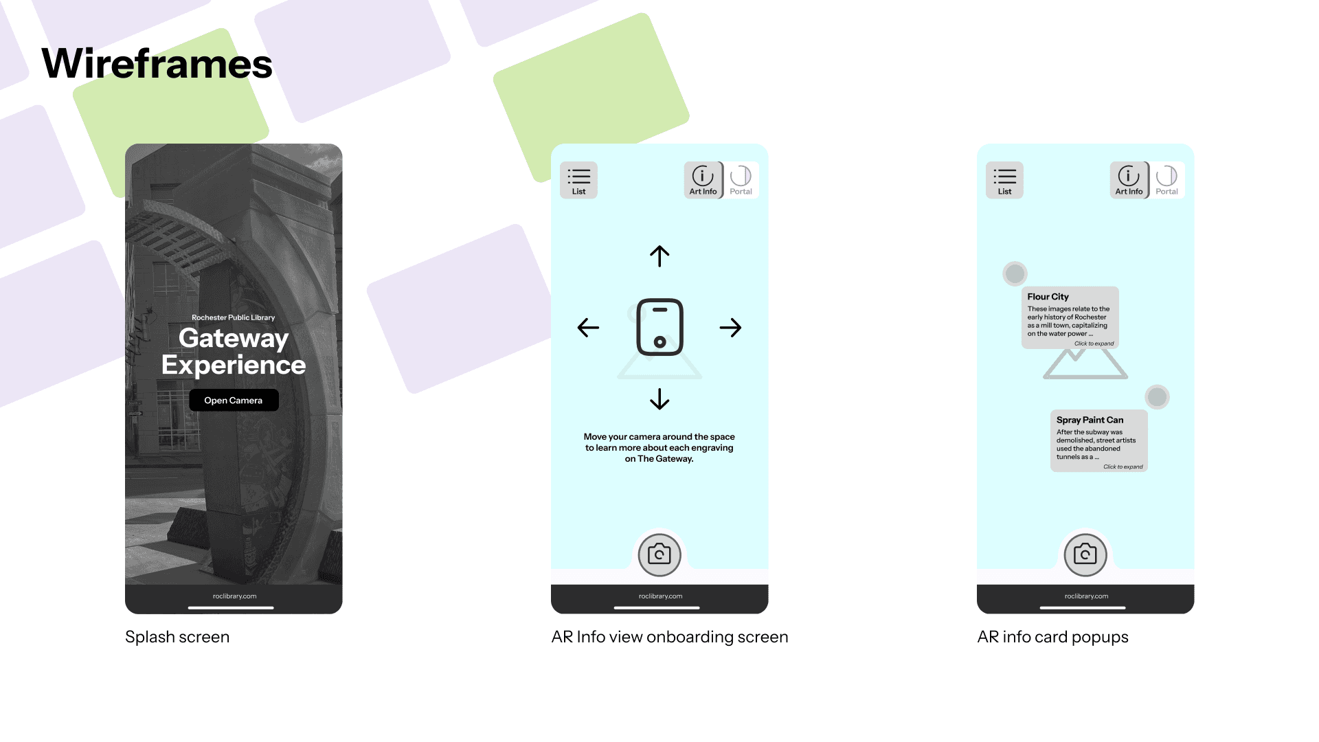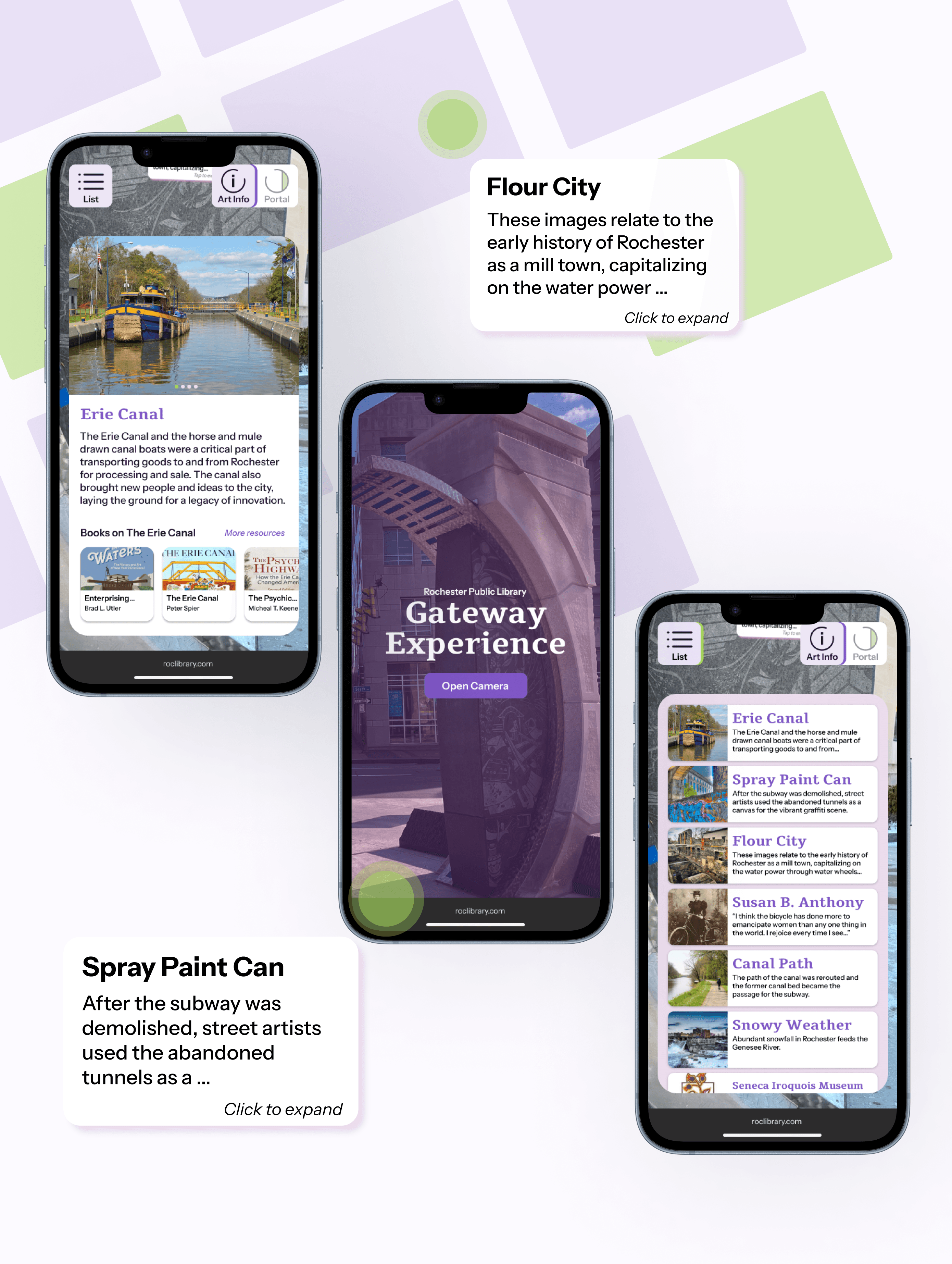 The final result demonstrates the potential of a sleek and user-friendly AR experience to enhance engagement with public art and history. The prototype effectively showcases how AR technology can transform a static art installation into an interactive learning tool, sparking curiosity and providing context in an engaging way. While this is a prototype, it lays a strong foundation for a fully realized application that could significantly enrich the visitor experience at the Rochester Public Library and promote a deeper understanding of local history.