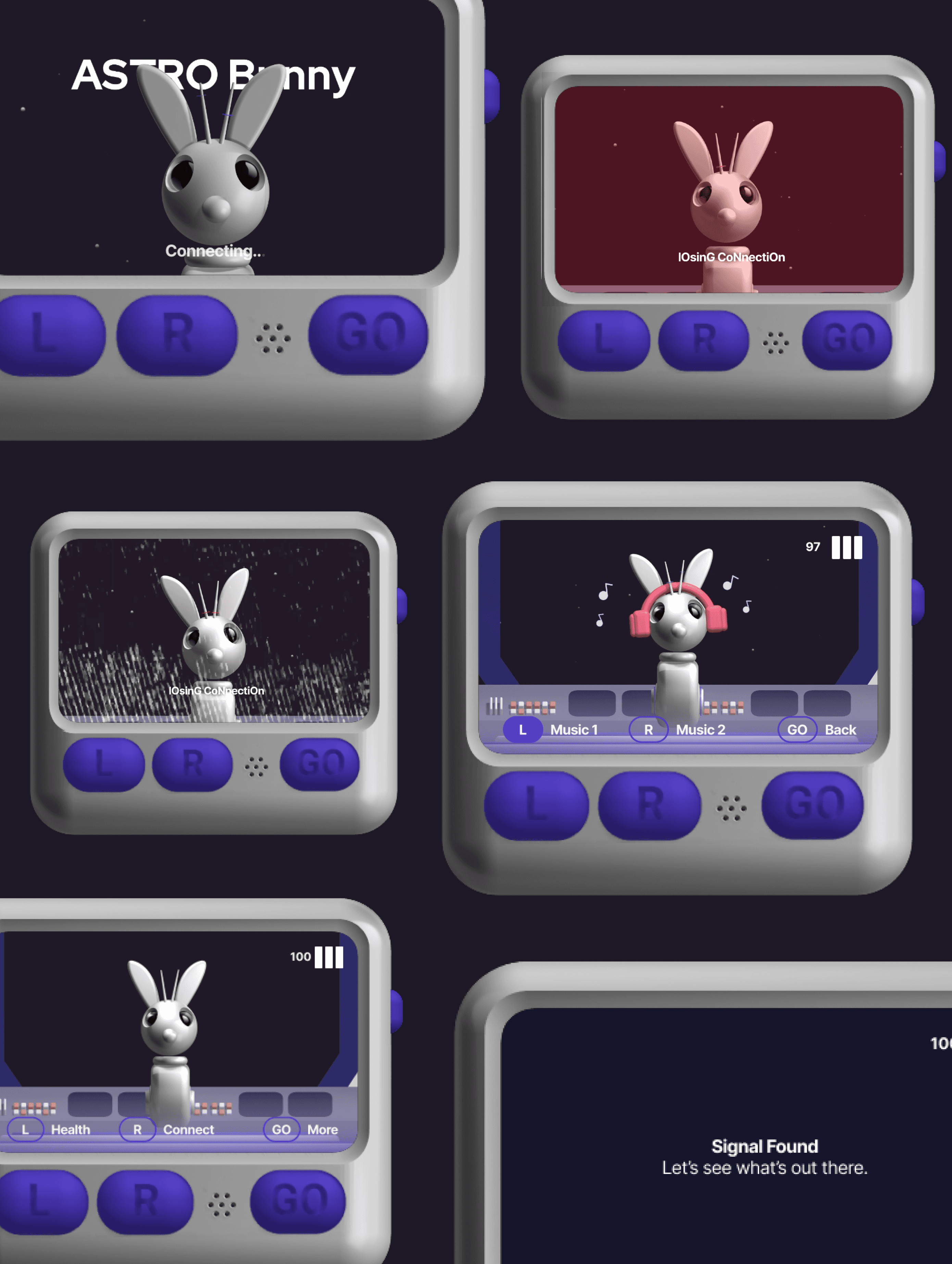 Meet Astro Bunny - Your virtual pet for galactic travel! This project reimagines the iconic 1990s Tamagotchi, blending its nostalgic charm with modern design sensibilities. Staying true to the spirit of the original, the prototype retains compact handheld dimensions, limited physical controls, and a non-touch-enabled screen, while introducing contemporary visual aesthetics and gameplay elements.